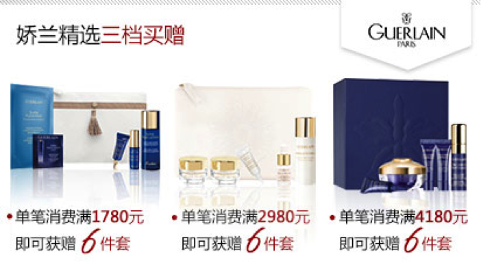 Guerlain娇兰:店内任意消费满2000元以上可至专柜享受帝皇蜂资黄金复原蜜面部护理1次。