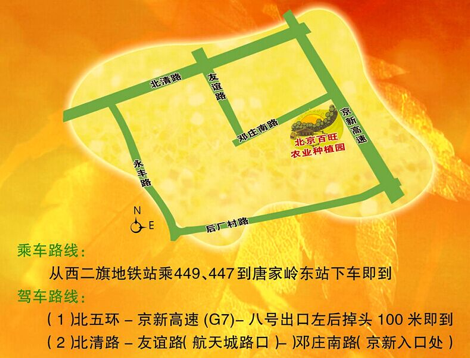 北京百旺农业种植园位于北京市海淀区西北旺镇唐家岭村,占地面积约500亩,交通便利、位置独特、景色宜人。园区严格执行标准化基地相关要求,种植果品蔬菜符合无公害相关标准并获得多项认证。园区种植产品以安全、健康为宗旨,种类丰富、味道纯正、品质上乘。