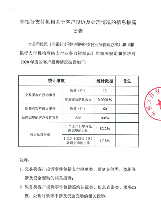 非银行支付机构关于客户投诉及处理情况的信息披露公告